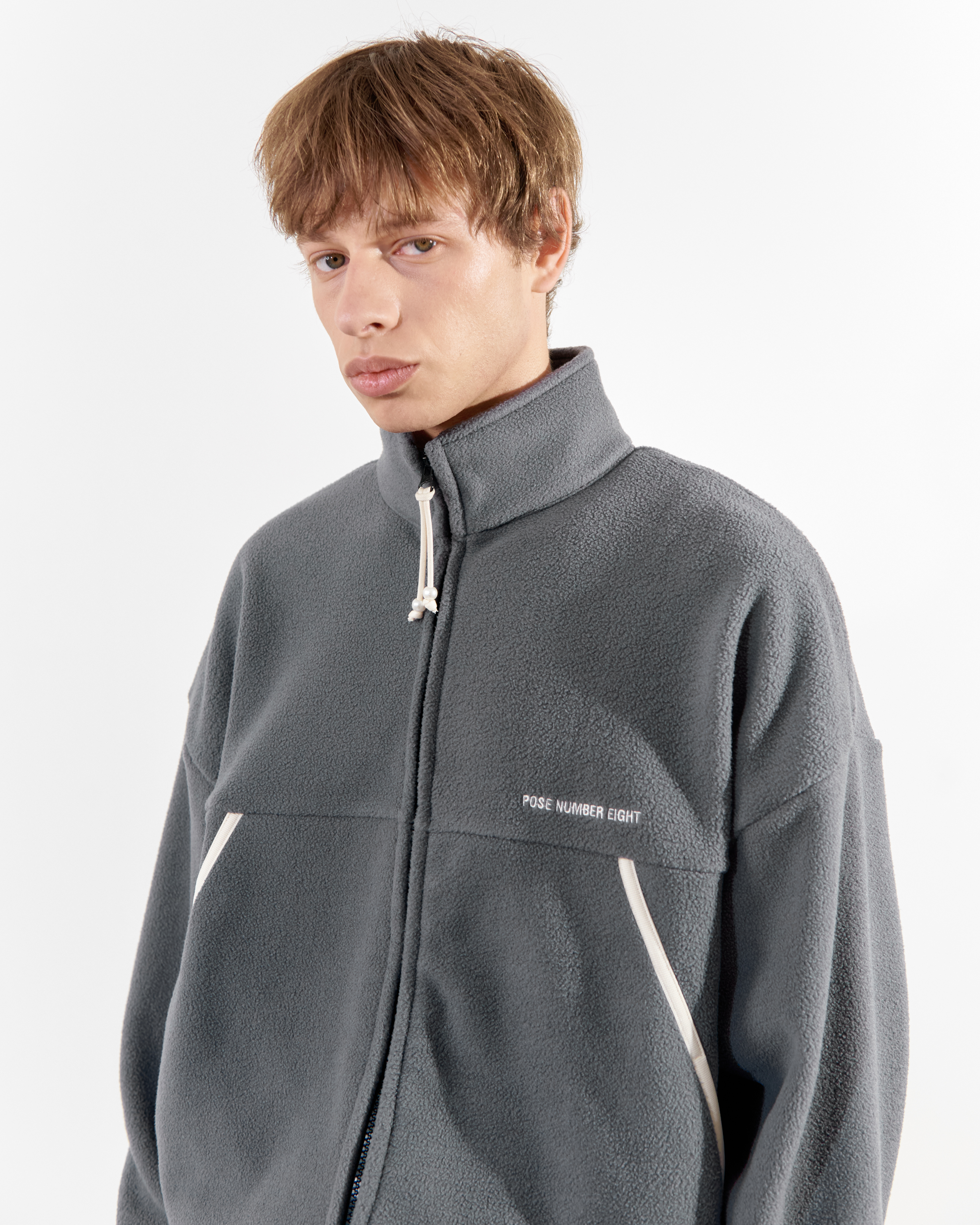 아이보리 배색 밴드 디테일과 오버사이즈 크롭 실루엣이 특징인 플리스자켓 입니다. 15온스 양면 덤블 원단은 가볍지만 높은 밀도감으로 보온성이 뛰어납니다. 2way 오픈 지퍼를 사용하여 다양한 형태로 스타일링이 가능합니다. 진주 비즈를 활용한 지퍼 풀러를 사용하여 디테일을 완성했습니다. 밑단 스트링을 통해 사이즈 조절이 가능하며 오버사이즈 핏과 드롭숄더 실루엣으로 편안한 착용감을 제공합니다.