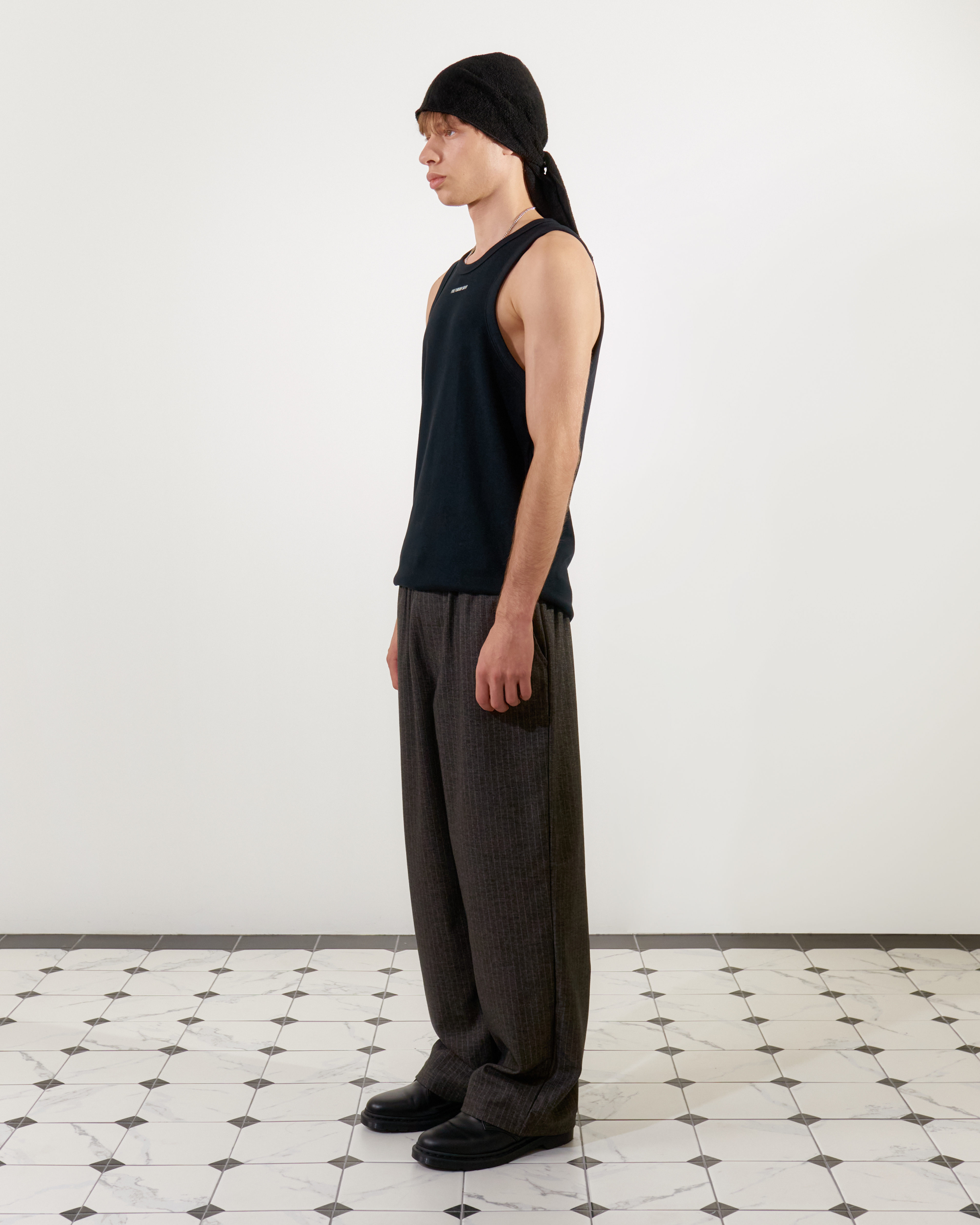 부드러운 슬랙스 소재로 제작된 와이드팬츠