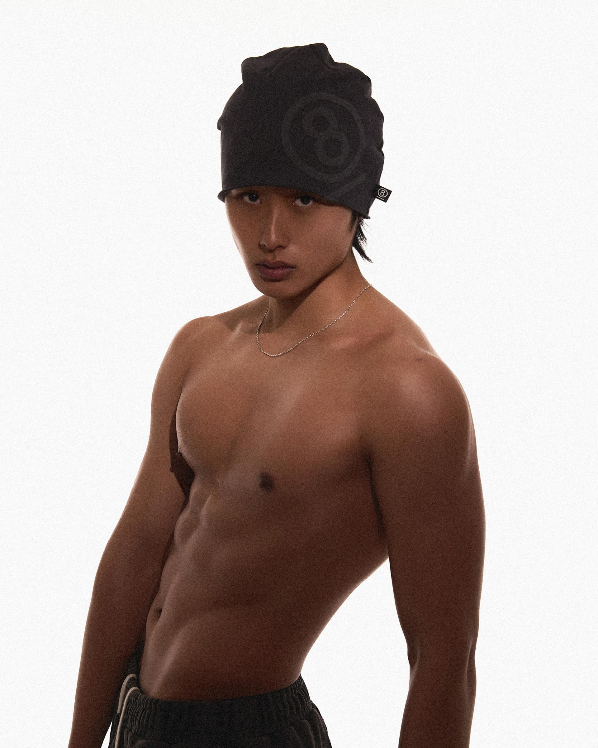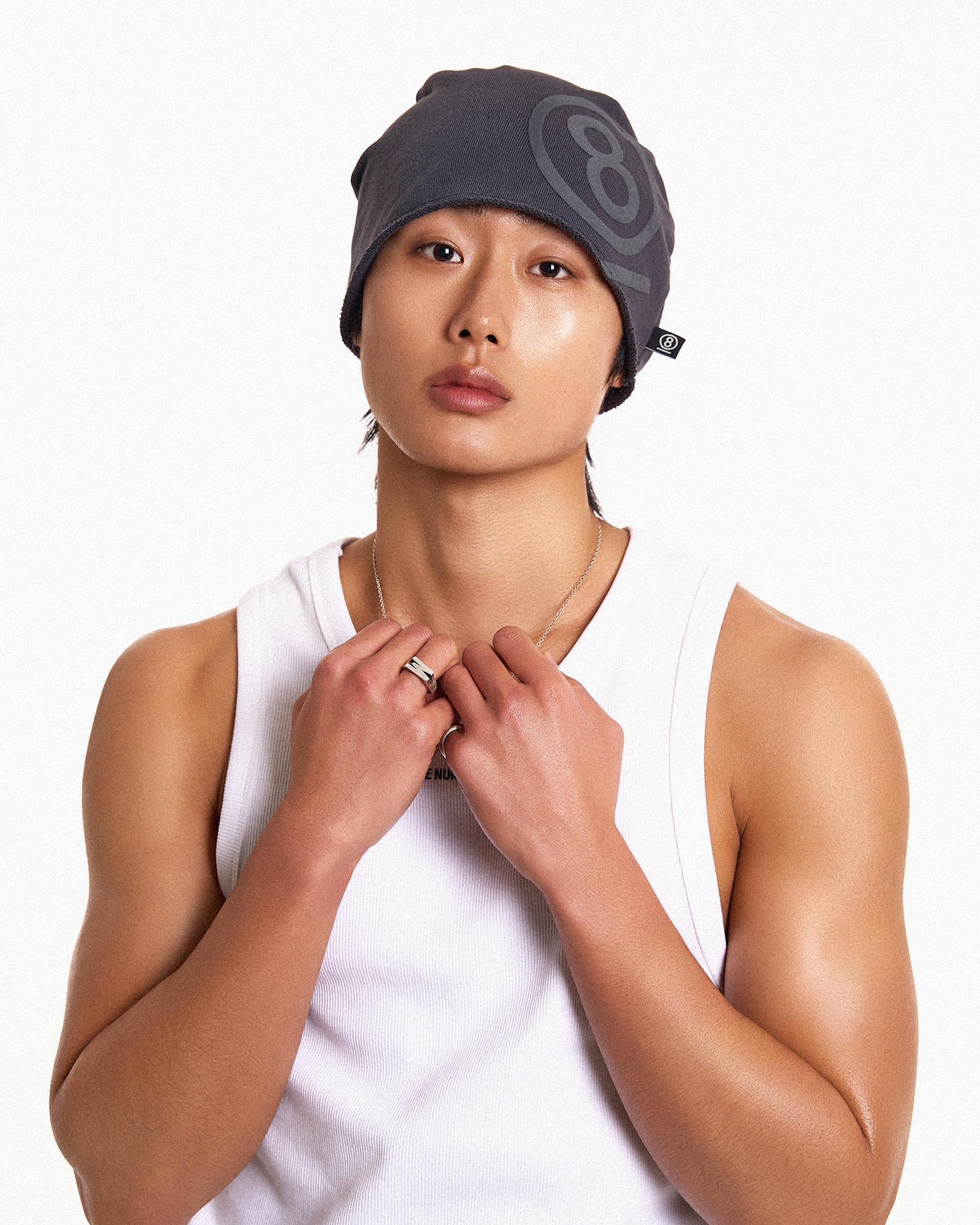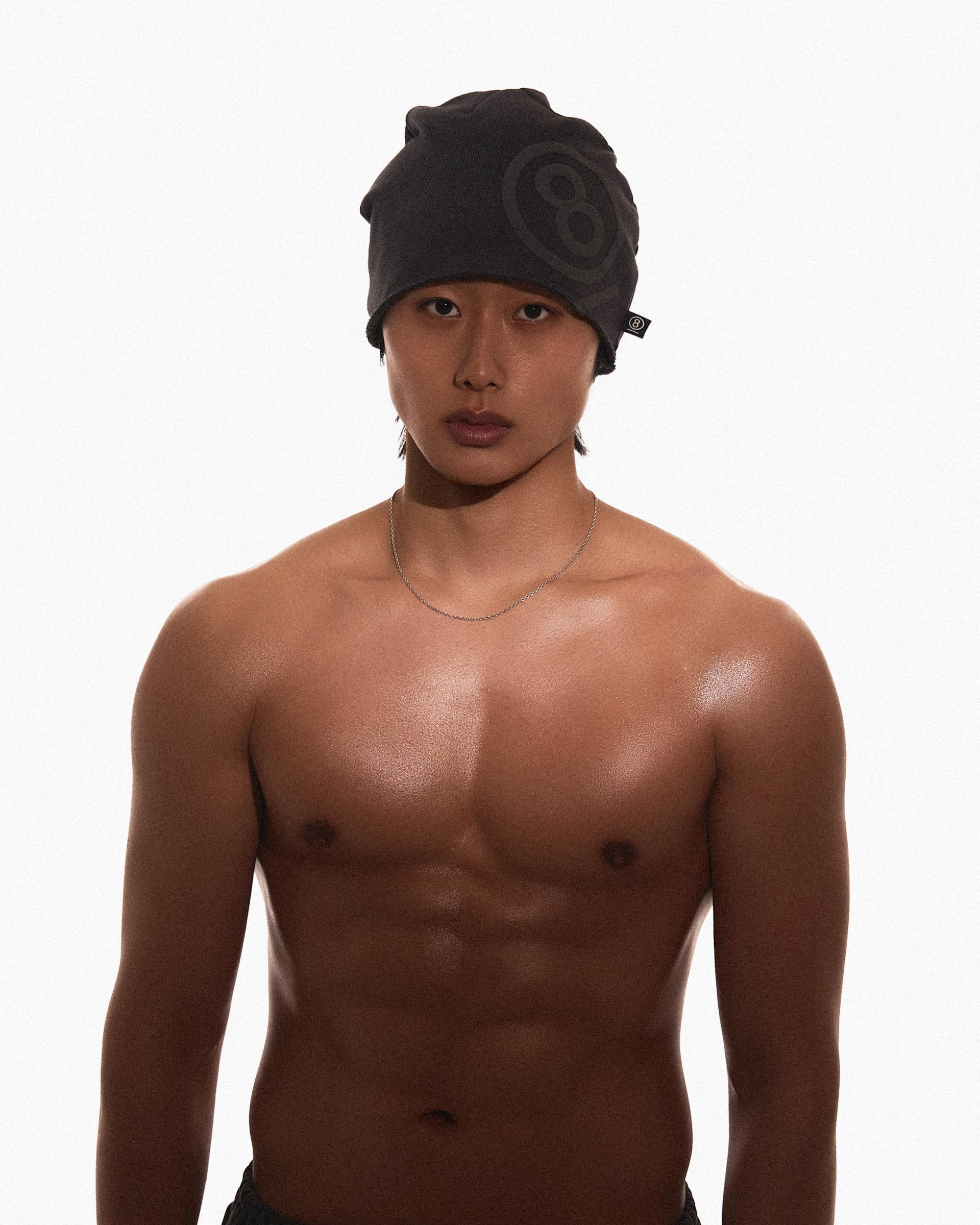 PUFF PRINT SWEAT BEANIE (CHARCOAL)