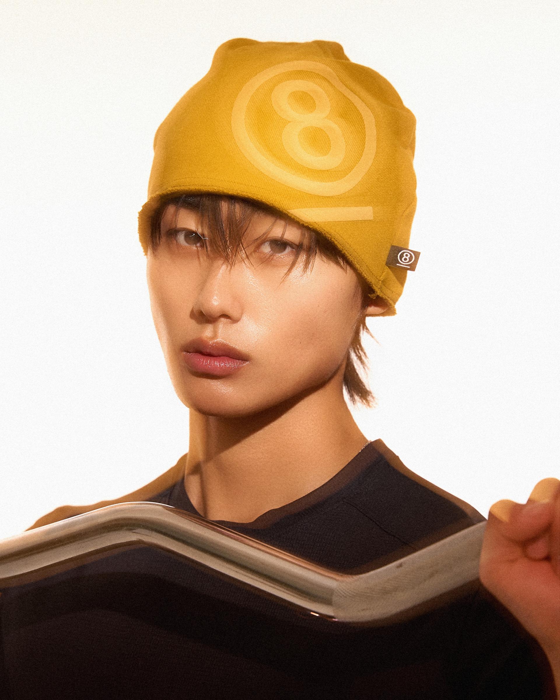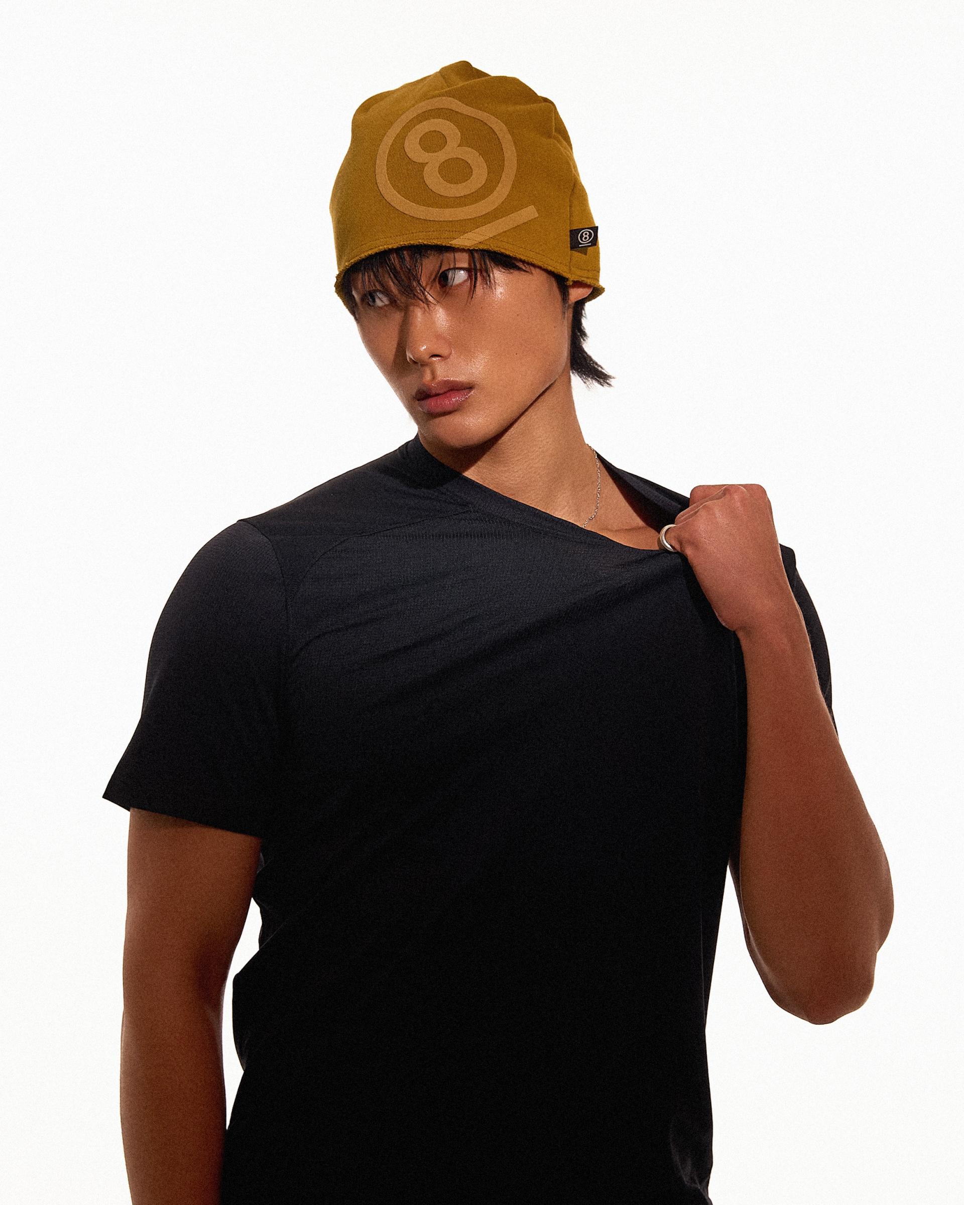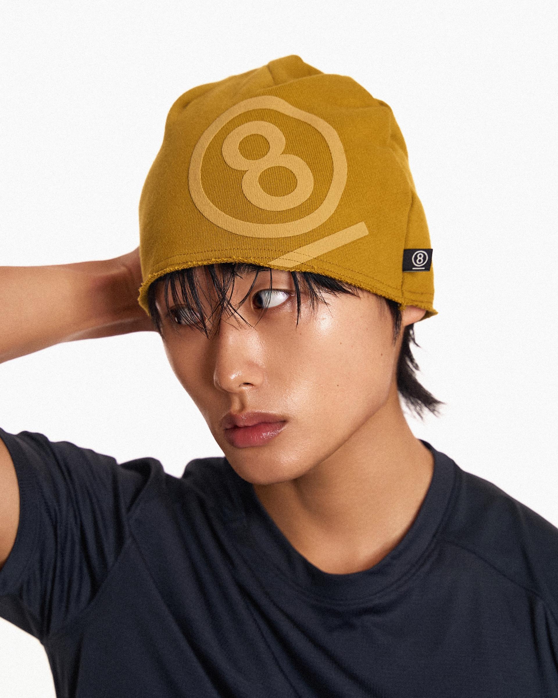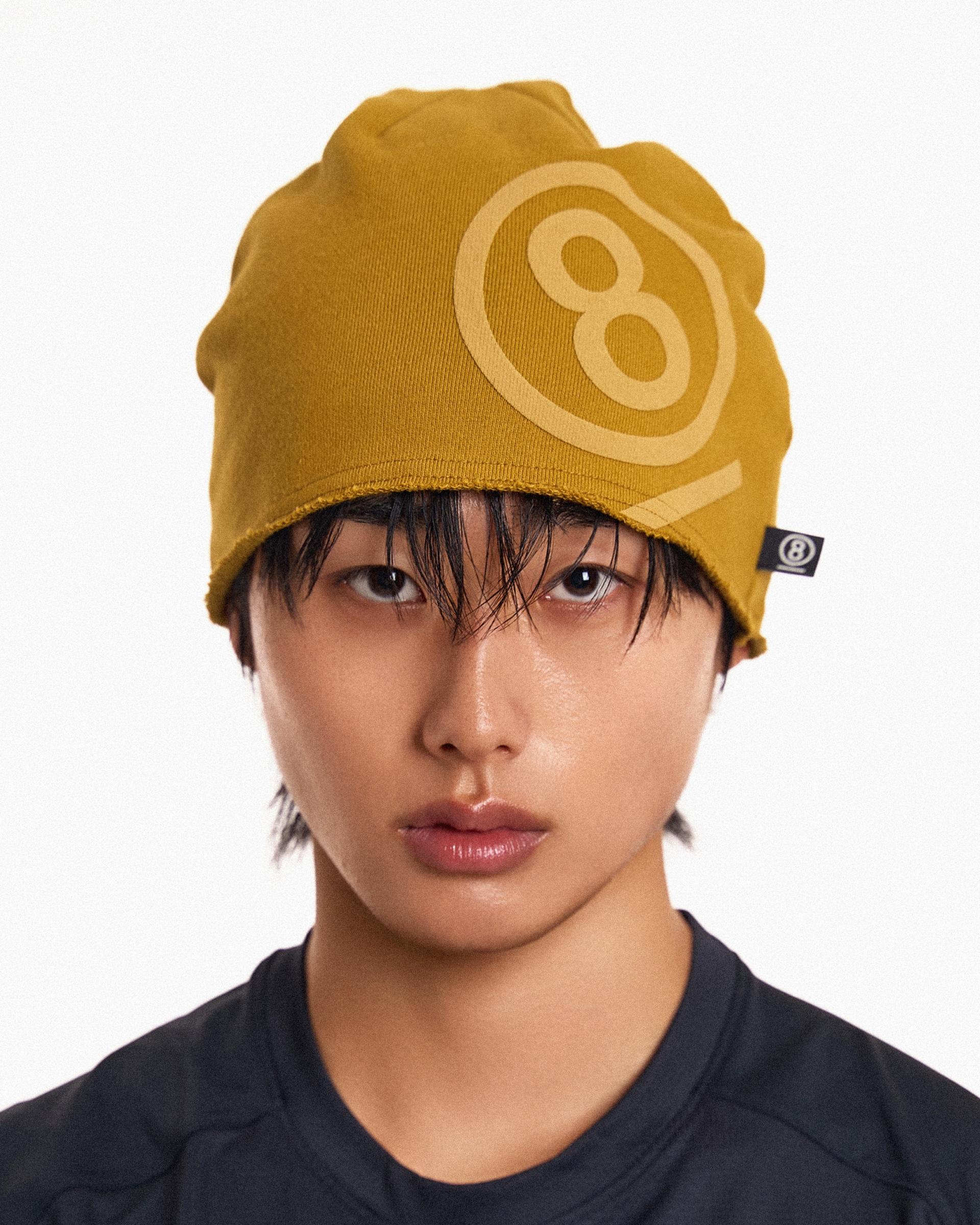 PUFF PRINT SWEAT BEANIE (MUSTARD)